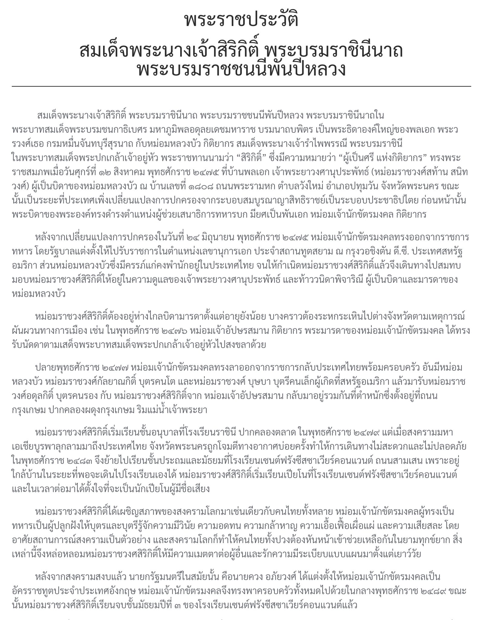 ขอเผยแพร่พระราชประวัติ สมเด็จพระนางเจ้าสิริกิติ์ พระบรมราชินีนาถ พระบรมราชชนนีพันปีหลวง